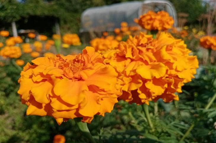 Fløyel og ringblomst er ikke bare lyspunkter for skjønnhet, men ekte vakter med en skarp duft, som ikke tolereres av nematoder, bladlus og til og med Colorado potetbille. Røttene deres frigjør spesielle stoffer som renser jorden, mens de iøynefallende blomsterstandene trekker skadedyrsommerfugler bort fra kålen din.